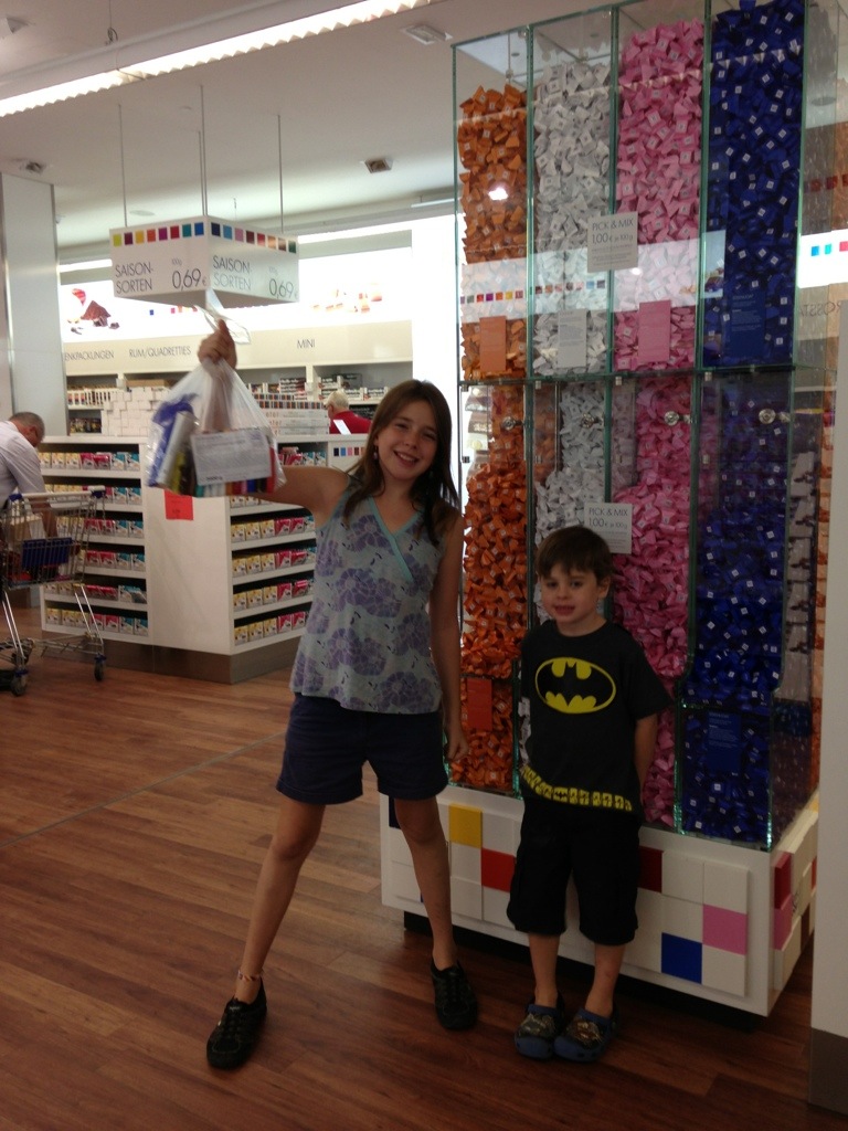 Daniel celebrated his 5th birthday during the trip. His day started and ended with chocolate frosted cupcakes, and included a visit to the Ritter Sport Chocolate Factory, which has a huge store with bargains on their factory rejects.