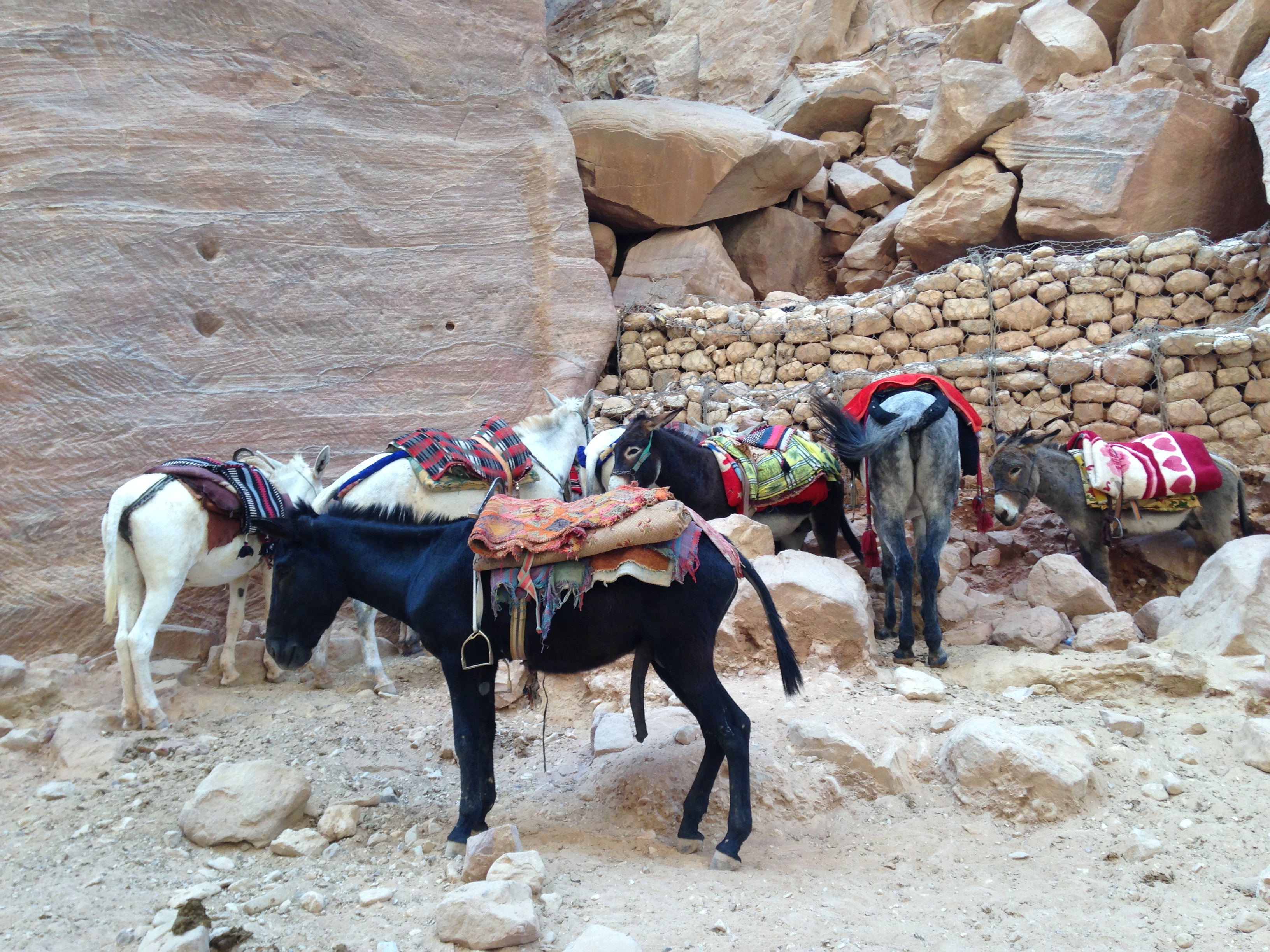 As you would expect, the place was crawling with tourists. That wasn’t too bad. What did get old was the need to dodge out of the way of the horse-drawn carts and donkeys that the local Bedouins rode up and down the narrow paths, looking for tired tourists who wanted a ride. Kids as young as five charged about on the donkeys, beating their sides with electrical cords or cut off pieces of water hose. We declined all offers of assistance, preferring to walk, but we had a few close calls with the animals.